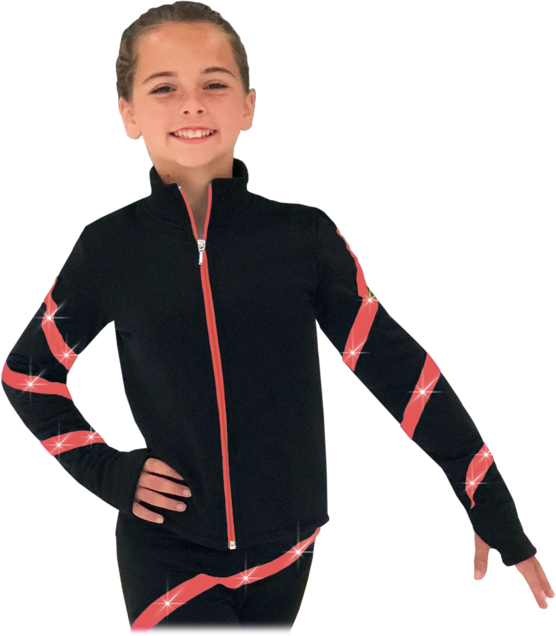 IceDress Figure Skating Thermal Jacket -Flip (Black With Pink Line)