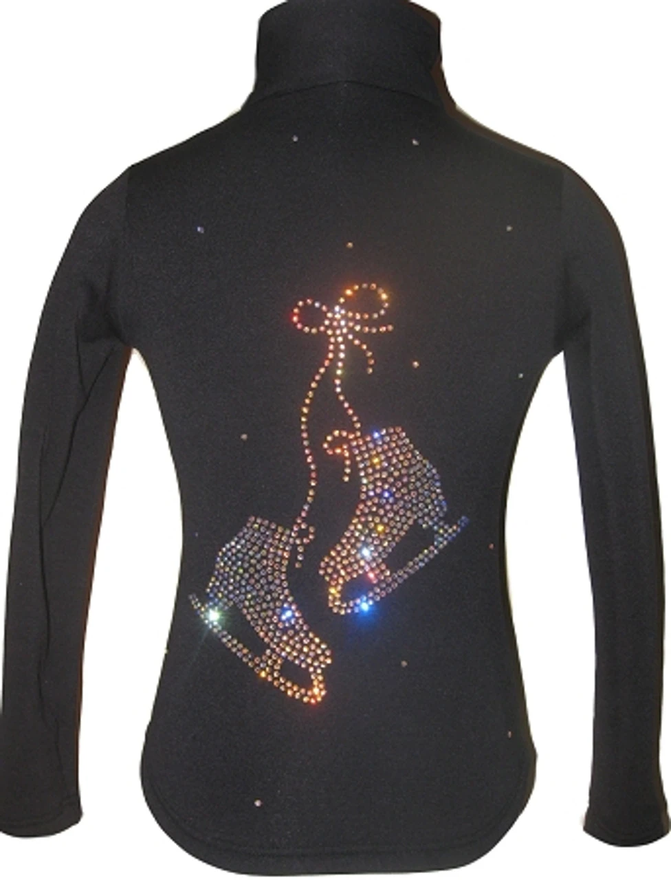 Polartec power stretch ice skating jacket with rhinestones applique. Over 600 sparkly clear AB crystals (“AB” coating added for rainbow reflection and greater shine). Rhinestones size 2 mm. Great for every day practice and competition event. Fitted style without a hood and high performance Polartec fabric ideal for ice skating that demand freedom of movement, moisture management, and warmth. Enjoy skating and look great on the ice with premium ice skating jacket by Ice Fire – your way to shine!