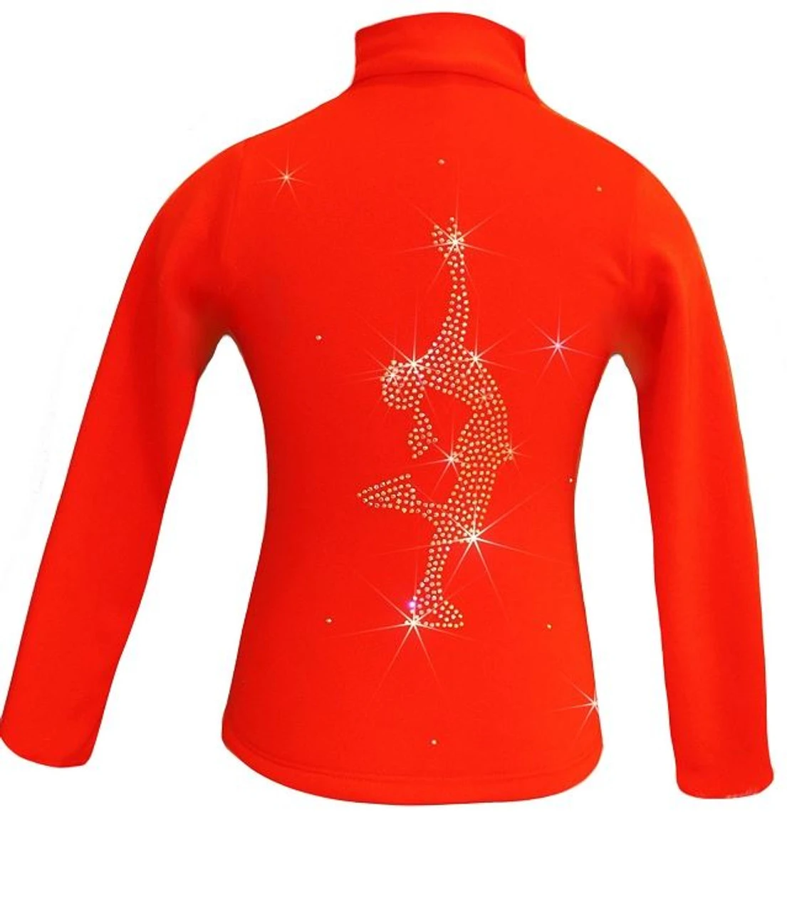 Bright orange! Stay warm and look great in bright orange Polartec power stretch ice skating jacket with crystals “Layback” applique: 400 czechoslovakian rhinestone. Great for every day practice and competition event. Fitted style without a hood and high performance polartec fabric ideal for ice skating, that demand freedom of movement, moisture management, and warmth. Enjoy skating and look great on the ice with premium ice skating jacket by Ice Fire – your way to shine!
