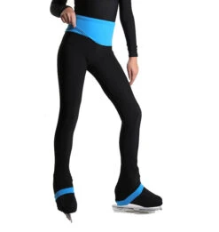IceDress – High-Waisted Thermal Figure Skating Legging With Wide Band (Black And Blue)